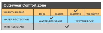100% polyester woven shell bonded to a water-resistant film insert and a 100% polyester microfleece lining
